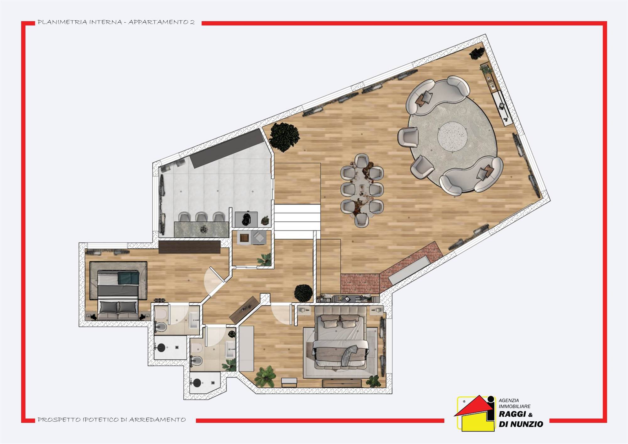 Ogni unità abitativa è stata meticolosamente ristrutturata con materiali di alta qualità e rifiniture di pregio, offrendoti un'eleganza senza tempo. E se il benessere è importante per te, la palestra attrezzata è a tua disposizione per mantenerti in forma senza lasciare la tua dimora. Int. 2 Salone Triplo di 67 mq con tripla esposizione, ampie vetrate con uscita sulla terrazza esterna panoramica di mq 110 ed affaccio sulla piscina, cucina abitabile, disimpegno, zona lavanderia, camera matrimoniale con boiserie originale, bagno ospiti con doccia, altra camera con uscita sulla terrazza e bagno en suite. Completano la proprietà una cantina di mq 5 circa e tre posti auto esterni. Non perdere l'opportunità di vivere in questa oasi di pace e comfort. Contattaci per prenotare la tua visita.